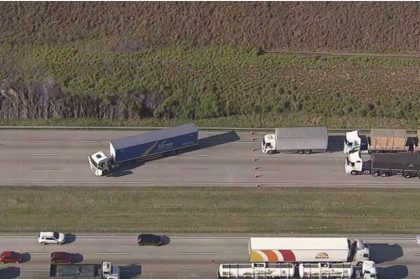 Uma carreta ficou atravessada na manhã desta quarta-feira (12) na pista do…