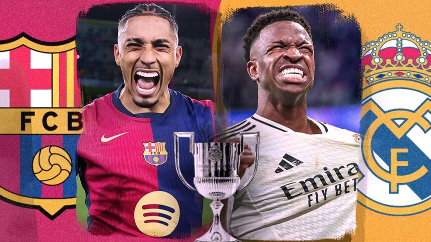 Não importa o lado vencedor, o certo é que haverá comemoração brasileira. O Barcelona conta com o atacante Raphinha, vivendo o grande momento da sua carreira e considerado um forte concorrente às premiações individuais da temporada. No Real, também há brasileiros no time titular, como os atacantes Vinícius Júnior, atual vencedor do Fifa The Best, e Rodrygo. Mas, na Copa do Rei, quem brilha é o reserva Endrick, um dos artilheiros da competição, com cinco gols – como Mbappé ainda é dúvida, por uma lesão no tornozelo, Endrick tem chance de jogar a decisão. O outro brasileiro do Real, o zagueiro Éder Militão, ainda se recupera da ruptura de ligamento que o tirou da temporada.