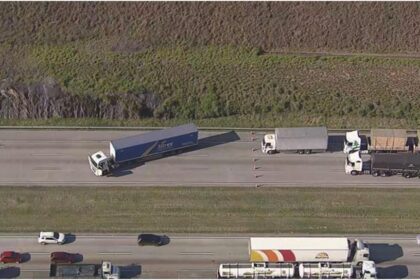 Uma carreta ficou atravessada na manhã desta quarta-feira (12) na pista do…