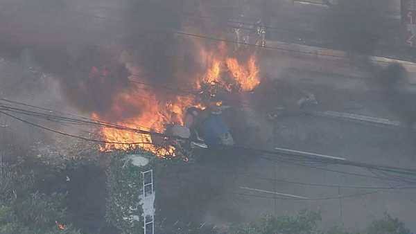 Na queda, a aeronave atingiu um ônibus e foi ouvida uma explosão. Uma grande nuvem de fumaça preta pôde ser vista à distância pela cidade.