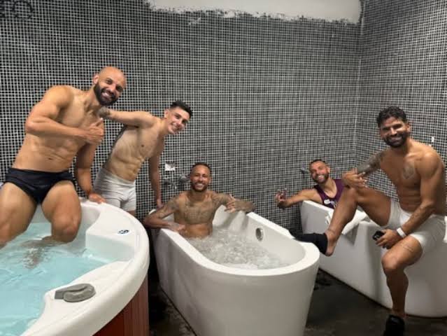 Após o triunfo por 3 a 1 diante da equipe de Diadema, o astro do Santos postou nas redes sociais uma foto com alguns companheiros de time na banheira de recuperação física da Vila Belmiro.