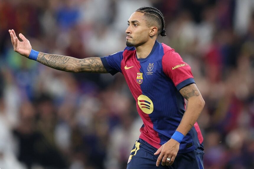 Já no início do segundo tempo, o Real parecia que conseguiria reagir. Após boa jogada pela esquerda de Vini Jr., o atacante brasileiro encontrou Rodrygo livre na área e tocou para ele. O ex-jogador do Santos, no entanto, encheu o pé, acertou o travessão, e não conseguiu balançar a rede. No lance seguinte, o Barcelona fez seu quinto gol, com Raphinha driblando a zaga.