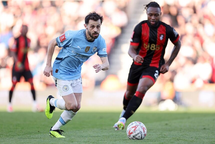 Bernardo Silva em Bournemouth x Manchester City, em março de 2025 — Foto: Catherine Ivill – AMA/Getty Images