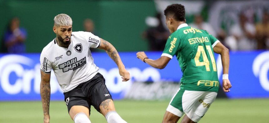 Barboza e Estêvão em duelo entre Botafogo e Palmeiras em 2024 — Foto: Vitor Silva/Botafogo