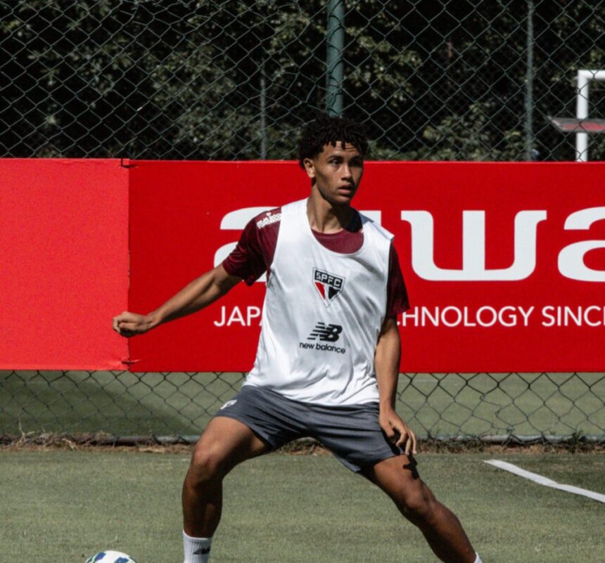 O garoto, que completa 17 anos só em outubro, tem contrato com o São Paulo até novembro de 2027.