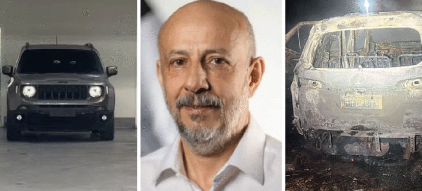 Jeep Renegade (à esquerda) abandonado e Toyota Hylux (à direita) queimado que foram roubados por criminosos indica que execução de Ruy Ferraz Fontes (ao centro) começou há mais de cinco…