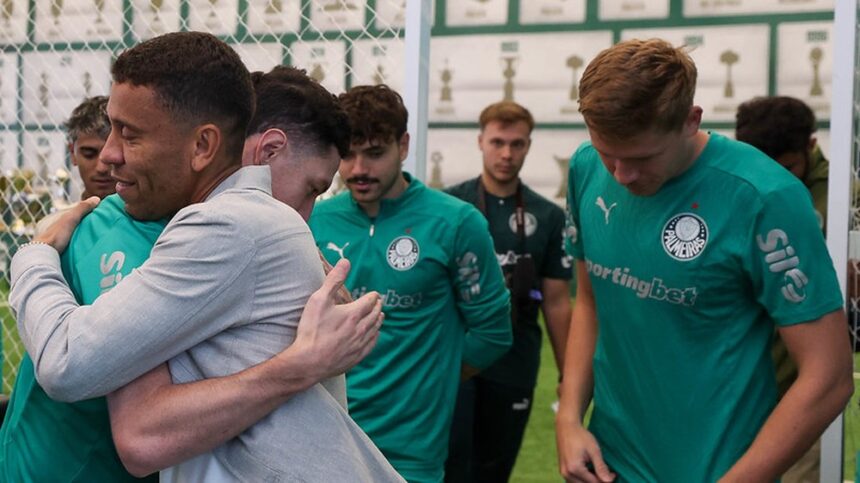Rocha abraça jogadores do Palmeiras em despedida — Foto: Cesar Greco / Palmeiras